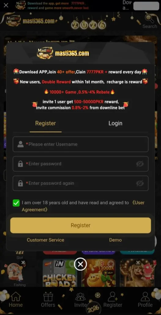 Login and Registration Process Of Masti365 Game
